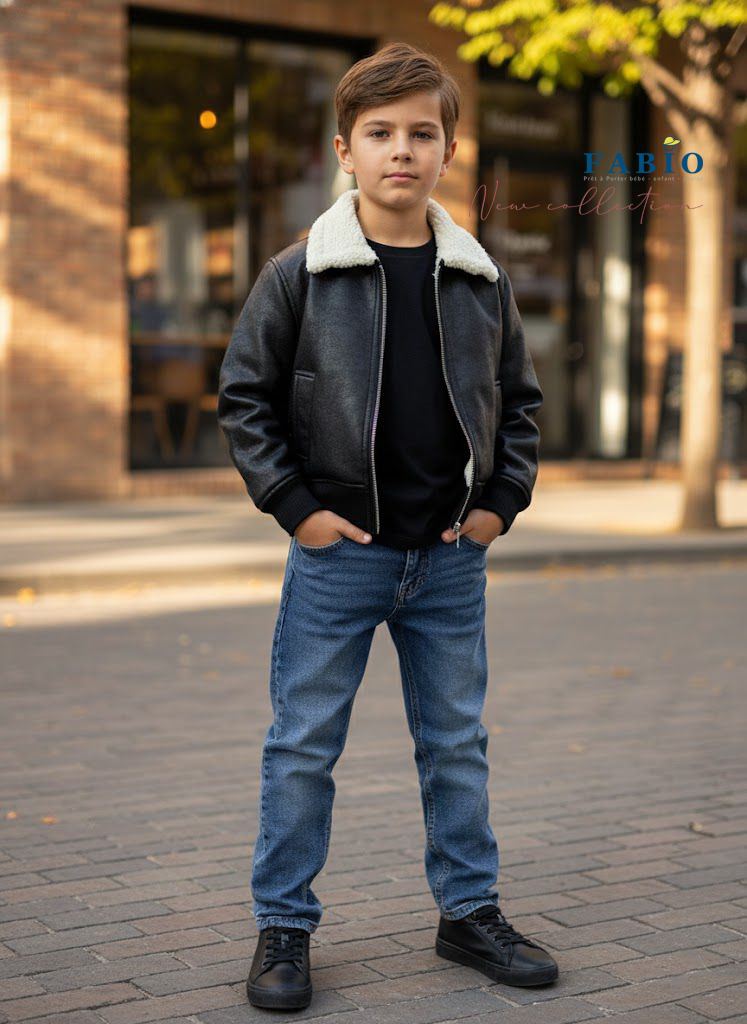 Gilet sans manches Enfant en Similicuir Marron – Doublure et Col en Sherpa